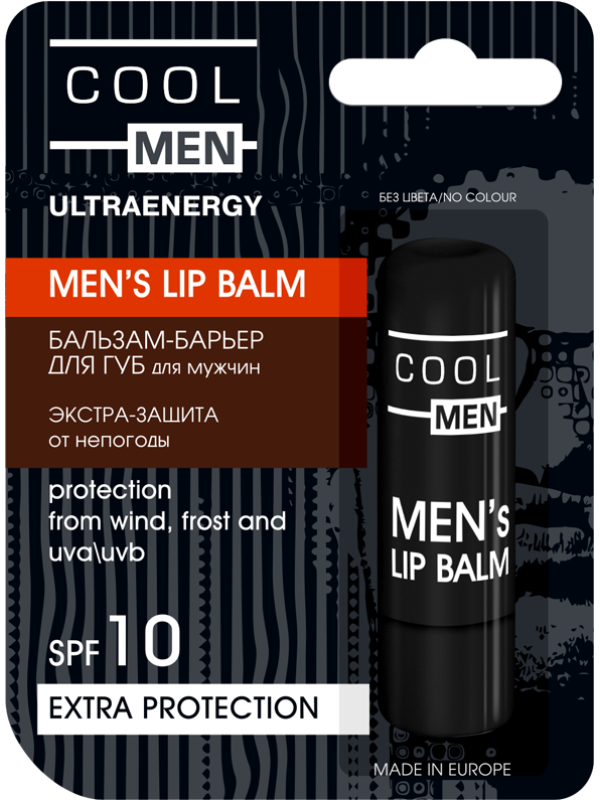 Cool Men ULTRAENERGY+SPORT. Чоловічий бальзам-барєр для губ Екстра-захист SPF 10 4,8г