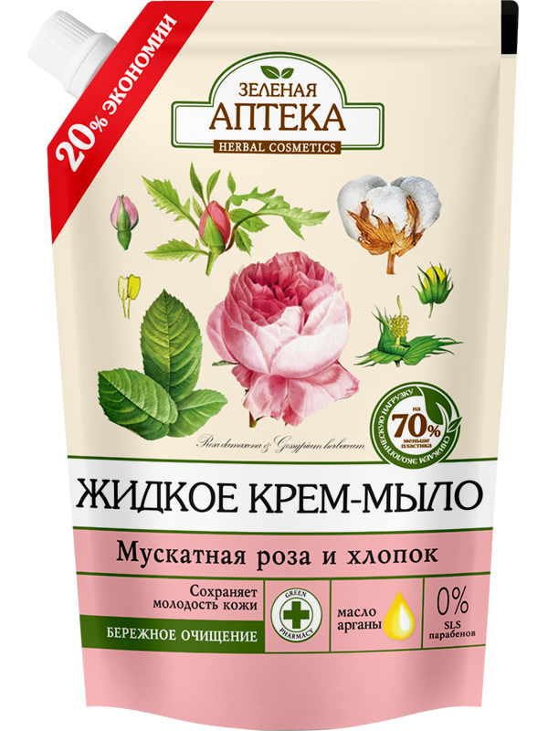 Рідке мило дой-пак Мускатна троянда та бавовна 460 мл Зелена Аптека